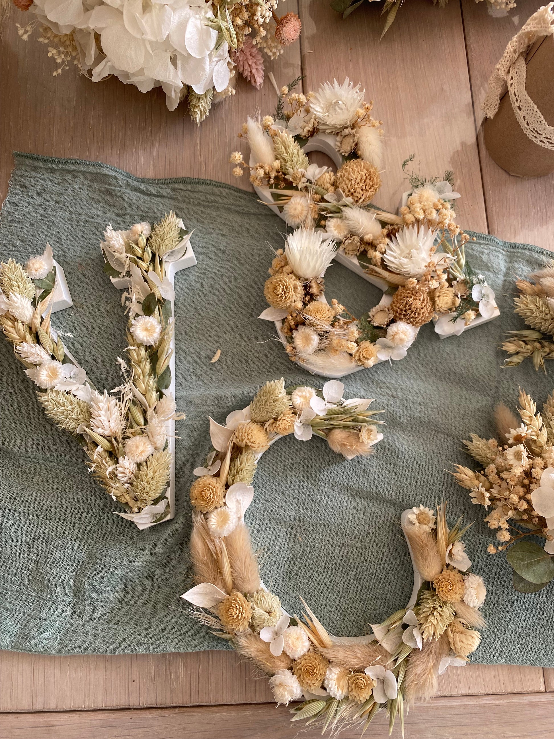 Lettre fleurie 15cm en bois blanc. Couleurs au choix.