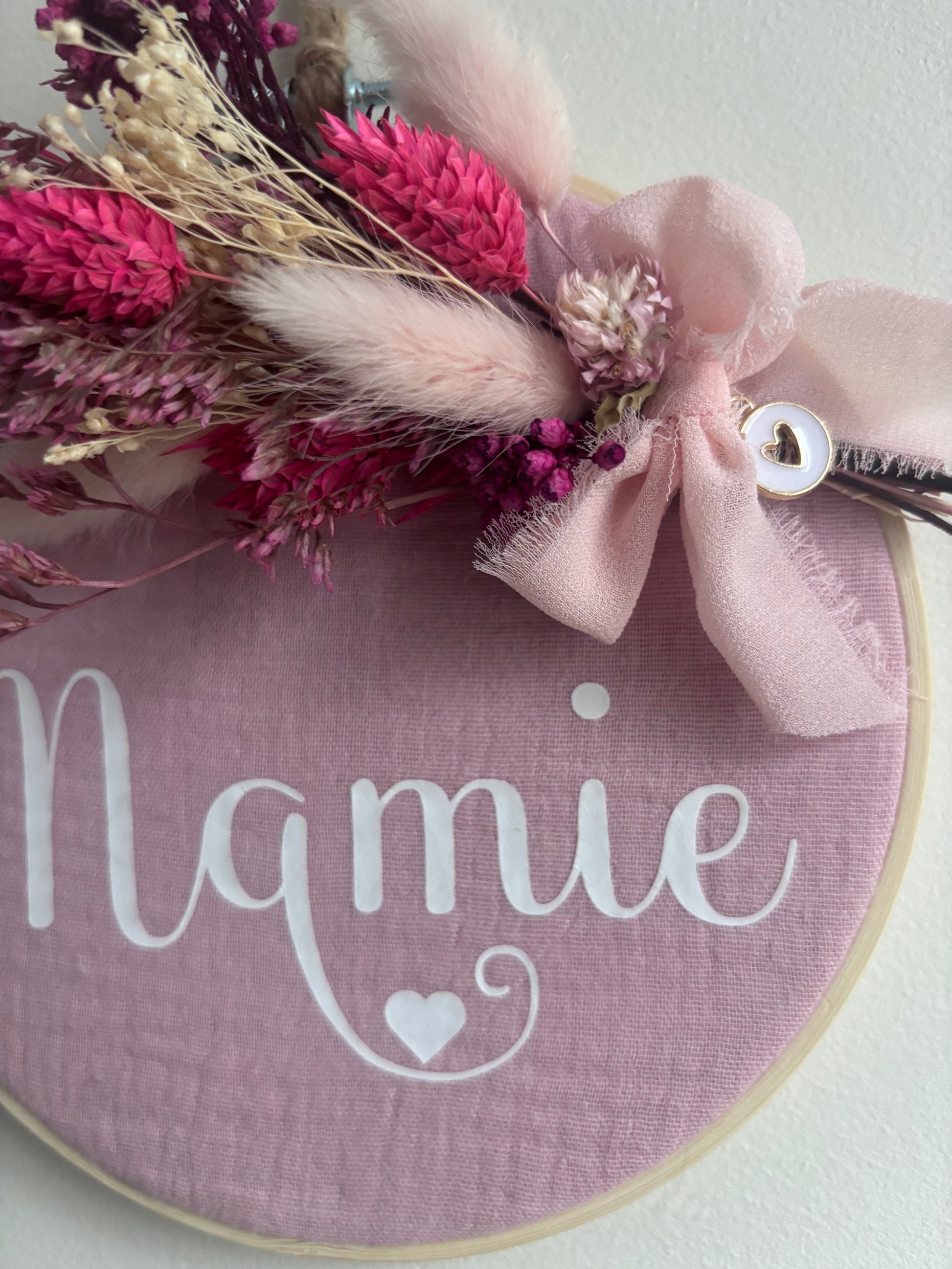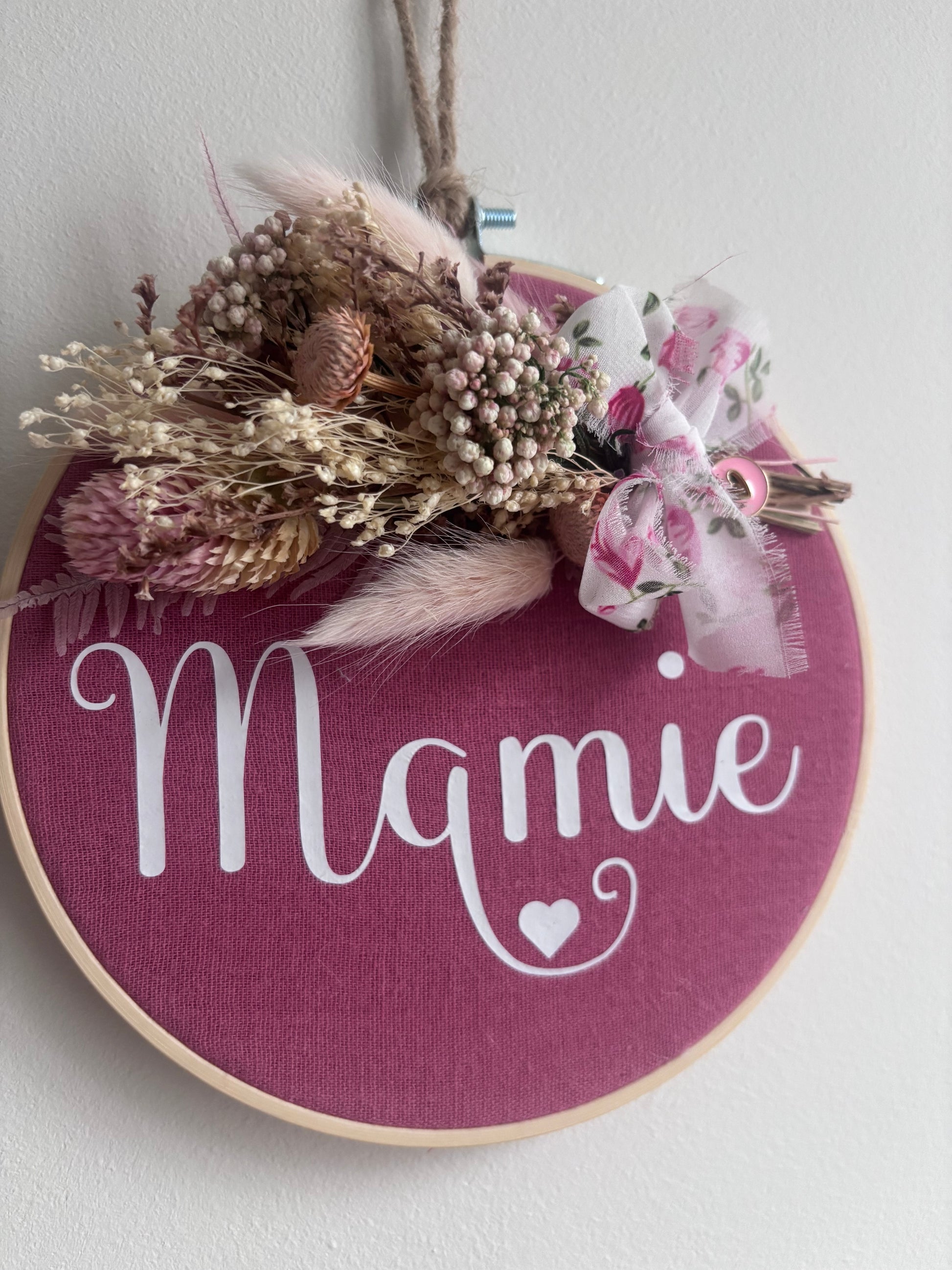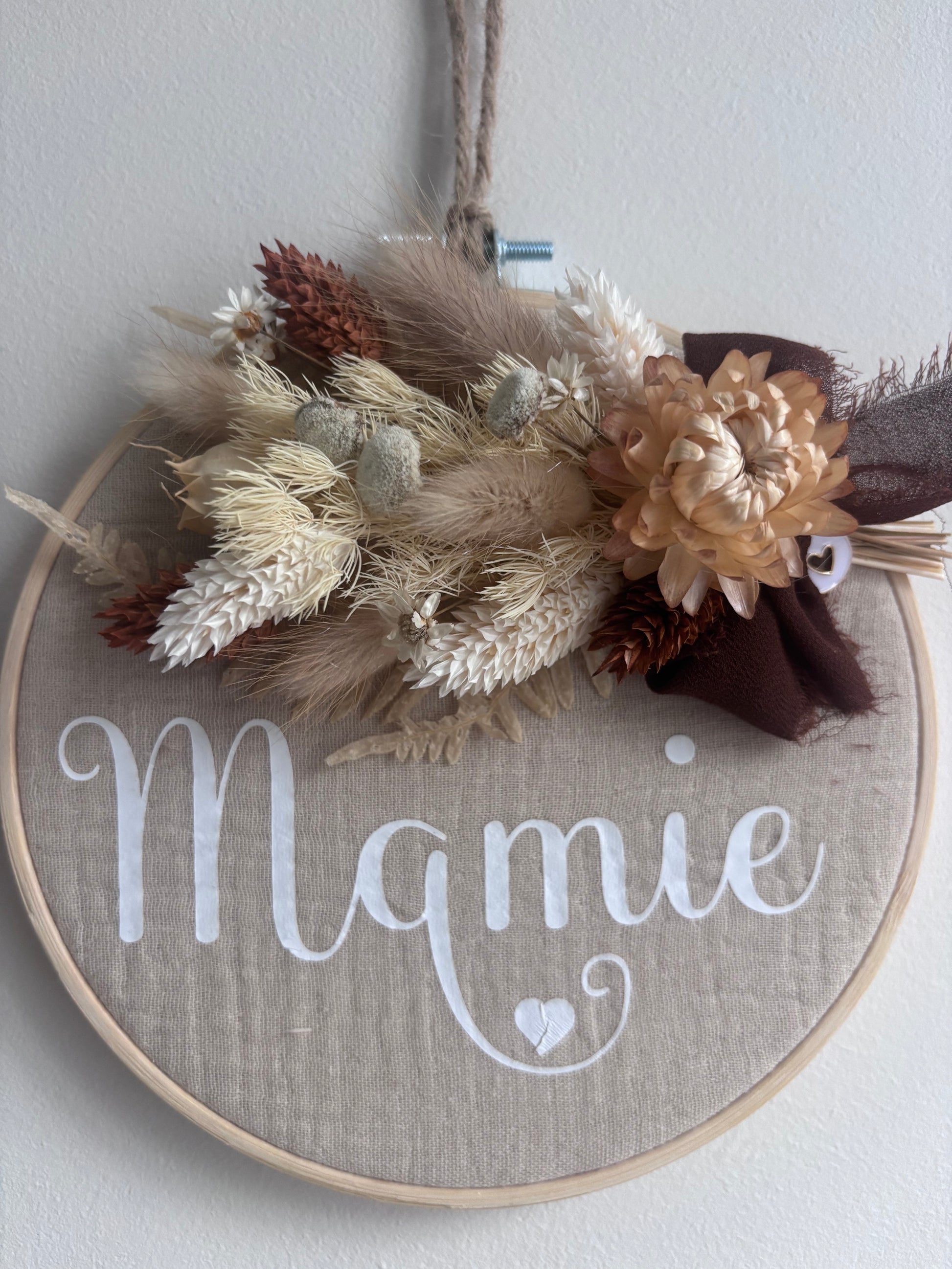 Tambourin décoratif "Mamie" et fleurs séchées